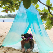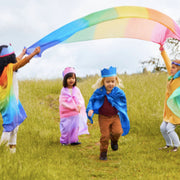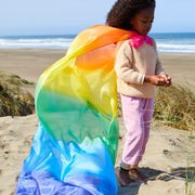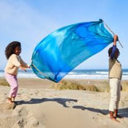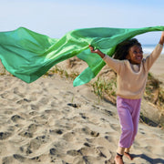 Giant Enchanted Playsilk measures 70 x 35" and is ideal for parachute play, draping as a canopy over a bed, a roof for a play stand, fort building, or as a backdrop for puppet shows. It pairs great with Sarah's Playclips!