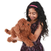 Joining the kennel club, the Folkmanis® Toy Poodle Puppy puppet is true to breed with soft red curly plush. This floppy doggy is life-size and lifelike with a movable mouth and weighted ears that add quizzical charm with a slight tip of its head.
