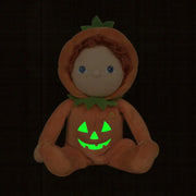 Dressed in a velvety orange onesie with a leafy green collar and a hood that flips up or down, Jack’s outfit is pure autumn magic. His soft, posable body makes him perfect for cuddles, adventures, and sneaky hideaways. Whether he’s peeking out from a trick-or-treat basket or showing off his glowing pumpkin design, Jack O’Lantern brings a festive sparkle to every playtime.