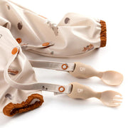 Award-winning Bibado 'No-drop' Handi Cutlery is perfect for making mealtime adventures easier and more enjoyable for everyone. Attach directly to the Bibado Coverall Weaning Bib with the quick and easy poppers and let them keep their grippy fork and spoon close by, no matter how many times they drop them. They'll master independent eating more quickly, and frustration from constantly dropped cutlery will be minimized for both of you!