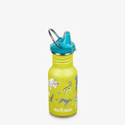Klean Kanteen Classic Kid's Sippy Bottle is a 12 oz sippy cup and water bottle designed with kids in mind. Spillproof sippy cap with dust cover, plus swivel metal loop so it can be easily attached to stroller or bag. Designed to play hard, the chip-resistant Klean Coat finish is durable and safe for people and the planet. Narrow profile for easy gripping that fits little hands perfectly. Interchangeable caps for easy transition as kids grow up, providing a lifetime of use, from baby bottles to sippy to sports bottles at school.