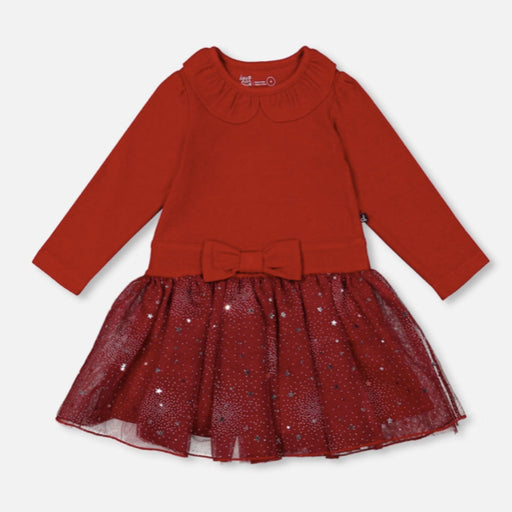 deux par deuxThis Bi-Material Red Dress with a Glittering Skirt is made for twirling through special moments and sweet celebrations. This festive long-sleeve pa...