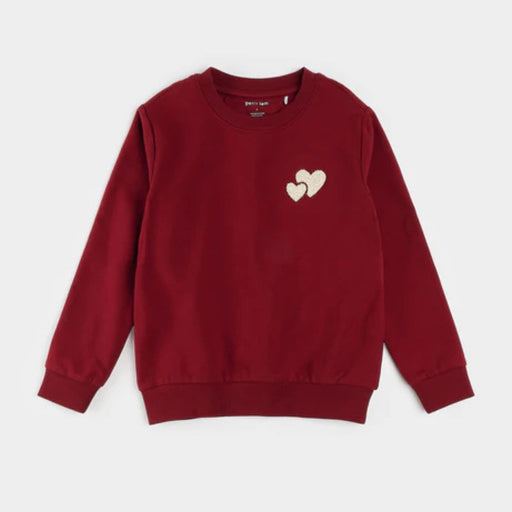 Petit LemThe Heart to Heart Scarlet sweatshirt is perfect to match younger siblings. This soft, French Terry piece has the sweetest double heart chenille de...