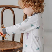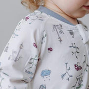The long-sleeve-footed sleeper is in Herb Garden print, a new addition to our Eric Carle collection. It features one of the most beloved children's book characters, the Very Hungry Caterpillar, eating his way through the herb garden. This print is an ode to the children's book author and illustrator.