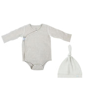 - The beanie comes in a light grey, a sweet neutral that makes it easy to mix and match from anything in your bubs’ wardrobe. - The Kimono sleeves are foldover mitten cuffs to protect baby's hands