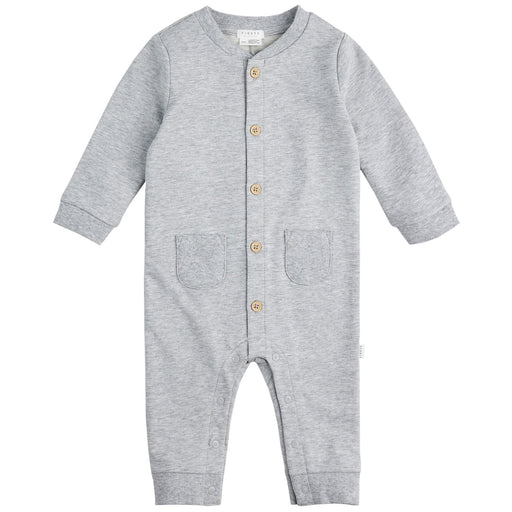 Petit LemThis heather-grey playsuit is made from organically grown cotton terry and is the perfect outfit choice for quick dressing to get them out of the d...