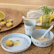 Lassig Children's Dish Set in the Happy Fruits Lemon design impresses with its functionality, lovely design and resource-saving material. The dish set is BPA-free, lightweight, and microwave- and dishwasher-safe. It coordinates perfectly with the matching long-sleeved bibs from the Happy Fruits collection.