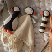 This sweet, Patient Puffin has been designed for little hands to grip and squish, and the scallop edge knitted cloth is perfect for snuggling. Pair with the knitted Rattle and Little Hands Toy to complete the collection.