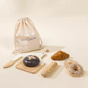 - This set includes: 1 baguette, 1 croissant, 1 pumpernickel, 1 bagel, 1 cutting board, 1 knife.