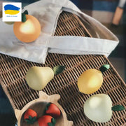 - The set includes 6 kinds of fruit: pomegranate, pear, apple, orange, lemon, 3 strawberries and a storage bag.