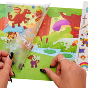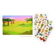 - Transfer sticker kit includes: 1 double-sided playboard scene, sticker sheets with over 60 stickers, and one wooden transfer tool