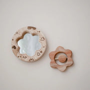 - Set is made from high-quality, natural wood and features a gentle rattling sound that will delight your little one. The rattle also fits into the mirror, making it like a puzzle for your child to fix together.