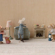 Looking for a handy solution for your mouse family? This sofa can be used as a couch or easily turned into a bed by unfolding. It is made in a soft quality for a comfortable seat. It's a perfect fit for the SuitCasa living room. The couch mouse fits in the living room in the Mouse Hole Farmhouse and SuitCasa for the mice.