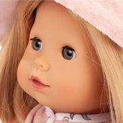 Maxy Muffin Butterfly delights with her soft fabric body, loving blue sleeping eyes, and blonde pageboy cut. She is not only a beautiful doll dressed in an old-rose terry suit and summer sandals but also the perfect companion for little doll parents who want to playfully develop their creativity and social skills.
