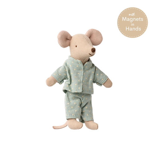 MailegThis Little Brother Mouse in Box, Blue Dots PJ with Magnet Hands is a classic Maileg item. This mouse is ready for hours of play and sleeps soundly...