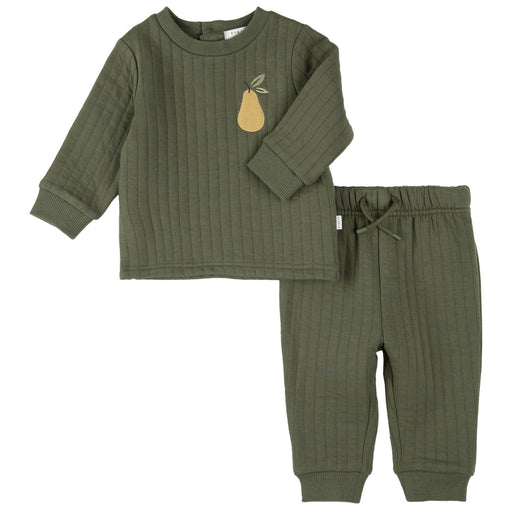 Petit LemDesigned for the transitional season, this two-piece, Pear Print on Fall Green Quilted Set is made from quilted jersey for a cozy yet flexible fit....