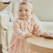 Cardigans are a staple for chilly spring days. This Rose Quartz Pointelle Knit Cardigan is cozy and made from the softest organically grown cotton. With simple flower motifs on the front, the cardigan coordinates beautifully with outfit sets from the same range.