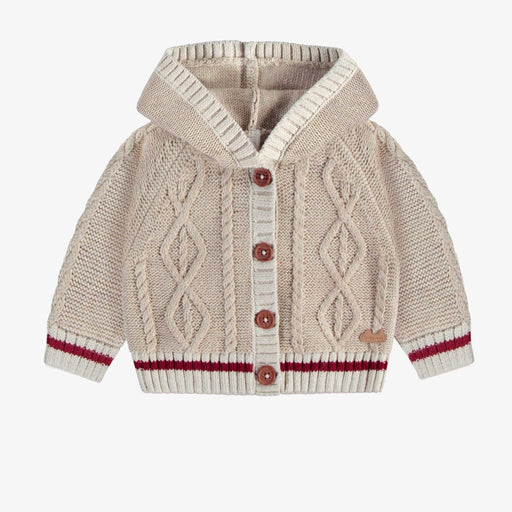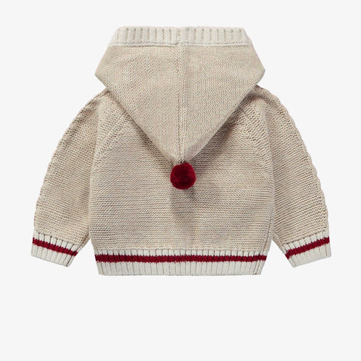 Souris MiniLong-sleeved raglan knit cardigan with a braided pattern, relaxed fit, pointed hood with small pompom, front opening with imitation wood buttons, m...