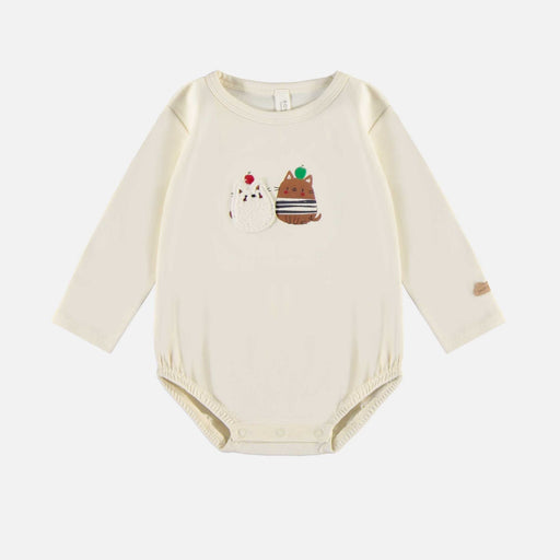 Souris MiniCream bodysuit with long sleeves, regular fit, a round collar, snaps at the crotch and an illustration of two sailor cats, one in chenille on the f...