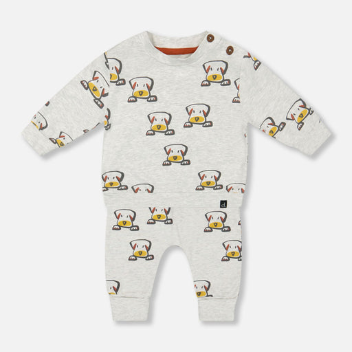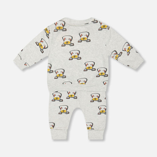 deux par deuxHe will love the adorable look and cozy feel of this Organic Cotton Long Sleeve Top and Evolutive Pant Set Heather Beige With Printed Big Dog. This...