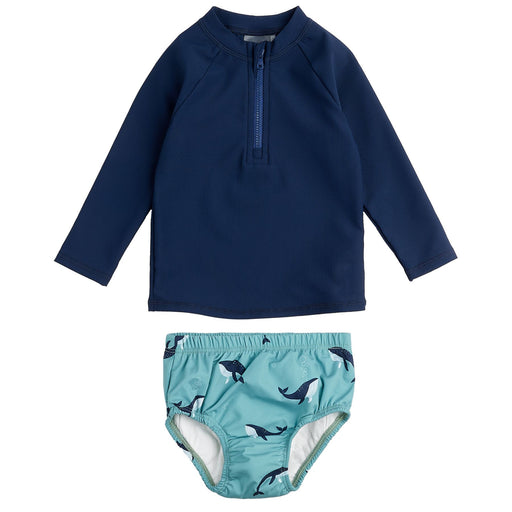 View full detailsRibbed Navy Rashguard with Whale Swim Diaper