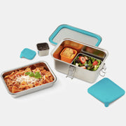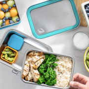 The Explorer Leakproof Lunchbox is Planetbox's first stackable, stainless steel, leakproof lunchbox. It features a microwave-safe tray for warming up leftovers! The removable tray creates two tiers for keeping food separate, while the silicone seal ensures food and leaky things stay contained. Use our magnets on the magnetic lid to style it up your way! Carry it with ease in a Lunch Tote or Sack bag.