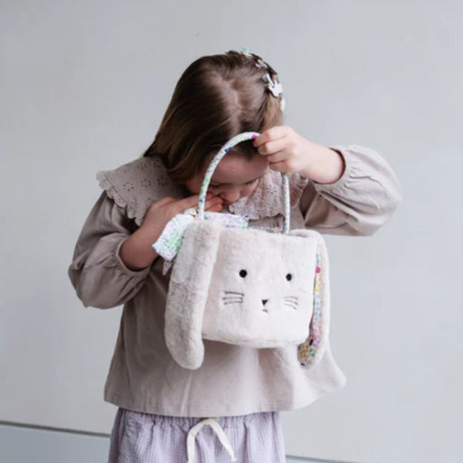 Mimi + LulaThis adorable woven Easter basket features the sweetest stitched little bunny face with the softest fluffy ears, a super cute pom tail and daisy pr...