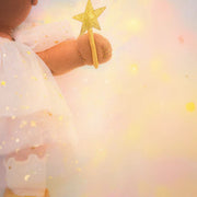 With magnets hidden safely in her hands, she can wave her wand or hold fairy food wherever she roams. Dressed in a glittery tulle dress and shimmering shoes, she sparkles brighter than a shooting star. Her embroidered wings add a soft shimmer to every hug, and her posable limbs make her perfect for magical adventures.