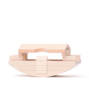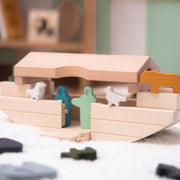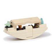 The Sycamore Ark has been taken from the Bible story Noah's Ark. The Ark has a removable roof and a lower entry platform to help the animals come onboard. The game aims to arrange the 20 figures inside the ark. The Sycamore Ark is a toy that reinforces the element of balance—the boat rocks, imitating the movement of a ship on the sea.