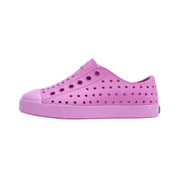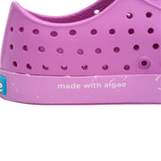 The Jefferson Bloom from Native Shoes in Winterberry Pink is made with repurposed algae using Rise by Bloom technology. The innovative process of crafting one pair of Kids Jefferson Bloom helps to restore clean air and water to the environment. This earth-friendly edition of the classic Jefferson features a perforated upper, shock-absorbent sole and a rubber rand and toecap made with recycled materials.