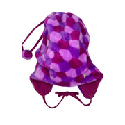 A comfy and versatile beanie with a lovely drape. This Honey Comb Slouch Beanie in purple is double-lined for comfort and enough fabric to make an added pom pom look awesome. The faux fur, cotton blend lining and ties make the cap particularly comfortable and keep your baby warm.