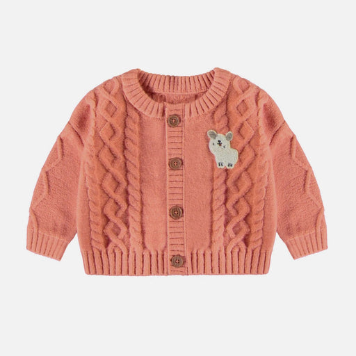 Souris MiniOrange Knitted Cardigan with Braid Pattern, long sleeves, relaxed fit, round neck, front opening with imitation wood buttons. It is made from soft ...