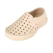 Walk on water with the Miles Bloom child Bone White from Native Shoes. The perfect fit for wider feet, the Miles Bloom is odour-resistant, hand-washable and made with repurposed algae using Rise by Bloom technology, the innovative manufacturing process which helps to restore clean air and water back into the environment.