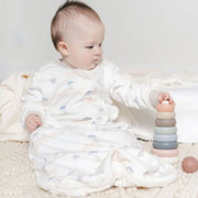 This versatile Nest Designs Organic Cotton Removable Long Sleeve Sleep Bag 1.0 Tog is made from 100% GOTS-certified organic cotton for clean comfort. This lightweight sleep bag has a 1.0 TOG rating, perfect for warmer weather. With a soft inner layer, this wearable blanket can be worn on its own or layered with a onesie underneath for extra warmth.