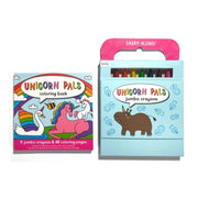 This Carry Along Colouring Book Set makes travelling with your kids a rainbow of fun. Designed in a smart carry-along case, OOLY’s travel colouring set includes nine jumbo crayons and 48 colouring pages—all featuring three favourite designs: pet pals, safari animals and sea life!