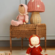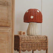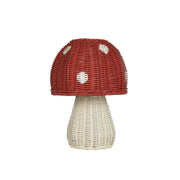 Turn any room into a page from a fairy tale with the Toadstool Lamp in Red, a whimsical piece that adds both light and magic to your space. The vibrant red, mushroom-shaped top casts an enchanting glow, making it the perfect addition to a nursery, playroom, or any space that needs a touch of woodland wonder. See other items from Olli Ella's Mushroom Collection.