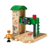 A lot of happy toy trains are out and about on the tracks. You need to decide which way the passing trains go by turning the red knob on this signal station to choose the left or right track. Be careful, though, as we don't want the fast-moving trains to crash into each other, as that would be a disaster. You also need to help the signalman climb the ladder and do his job correctly.