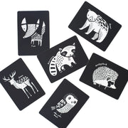 - Each box set contains six matte laminated cards with rounded corners. Each card features two animals on one side with white and the other with a black background.