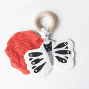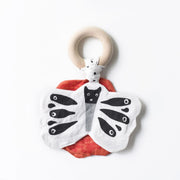 With the combined excitement of gentle crinkle paper sound stimulation, a smooth eco certified maple wooden teething ring, and adorable garden butterfly and flower design, this crinkle toy is sure to be one of baby and mom’s favorite things!