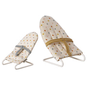 With this babysitter, it is easy to put your little friends to sleep. The base is made of metal and covered by the most lovely fabric. The chair fits micro-sized rabbits and bunnies and Teddy Baby perfectly.