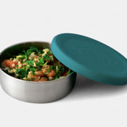 A Leakproof stainless steel and silicone container for Rover Lunchboxes. PlanetBox - Rover Big Round Dipper is to be placed inside your Rover Lunchbox or packed separately for snacks.
