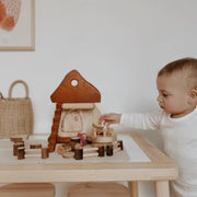 This is the sweetest little mushroom play set, perfect for those imaginary thinkers! The Qtoys Natural Mushroom House includes all accessories. This set is an open-ended toy that allows children to explore their imaginative skills.