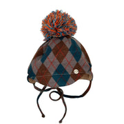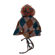 This adorable peaked cap in green and brown argyle print is a robust and comfortable companion for autumn and winter. The cut ear flaps and the tie ensure a secure fit. The cotton lining makes the cap particularly comfortable and keeps your baby warm.